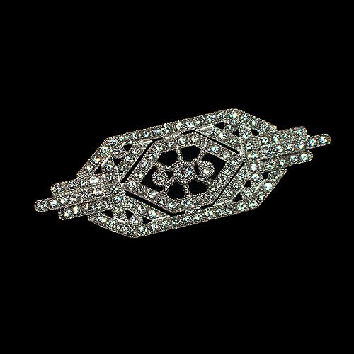 Modelo: 000910122 Broche plata de ley estilo placa art decó con circonitas en imitación a joyería de la época de oro blanco y brillantes.