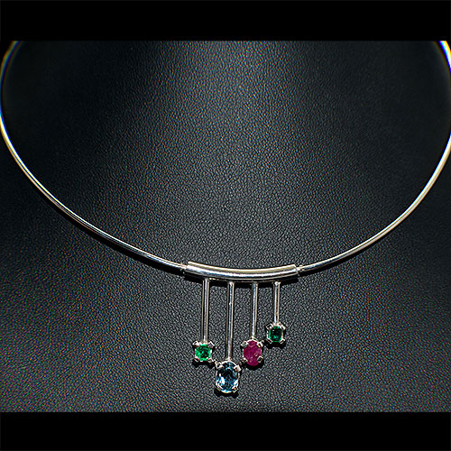 Modelo: 001522774 Gargantilla de oro blanco y gemas naturales: esmeraldas, rubí y aguamarina.